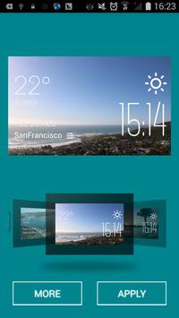 Basic live weather information (temperature, general conditions of the day) and local time are shown on the widget