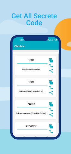 Anda boleh menaip kod rahsia secara manual pada pendail telefon dengan membaca kod dari aplikasi atau anda mempunyai pilihan untuk mengarahkan kod rahsia yang dikehendaki dari aplikasi kami.Oleh itu, anda mempunyai banyak maklumat lain mengenai paparan berkaitan telefon bimbit anda, bateri, perisian, perkakasan dan banyak lagi.