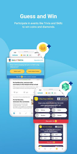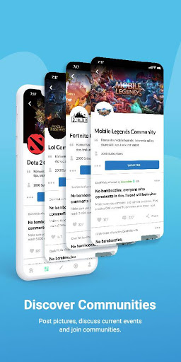 'WKWK' juga mempunyai pelbagai komuniti untuk Seni, Komedi, Humor, Sukan, Filem, Muzik, Kuliner, Komik, dan banyak lagi.‘WKWK’ adalah platform yang bagus untuk komuniti permainan seperti peminat PUBG, AOV, MOBILE LEGENDS dan juga komuniti E-Sports seperti EVOS ESPORTS dan semua Pasukan E-Sukan yang lain.‘WKWK’ adalah cara yang menyeronokkan bagi pencinta permainan untuk masuk dan bergabung dalam komuniti melalui media sosial.Ini juga merupakan aplikasi yang menyeronokkan untuk bermain permainan dan mendapatkan duit syiling dari Trivias.Duit syiling yang boleh digunakan untuk permainan Skillz.