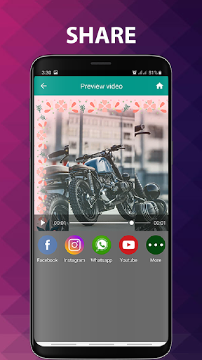 Status video is most popular trends now a days with increasing demand of social media. This app helps you to create video with background music and with animations. If you want to create videos from Images with background music and images slides then this app is for you. Images to video helps you to create video with background music.