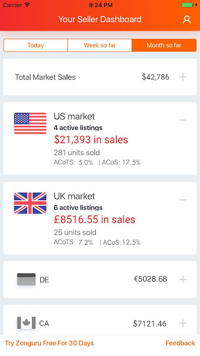 Aplikasi mudah alih ZonGuru adalah alat organisasi untuk Penjual Amazon yang ingin mengesan dan menganalisis senarai mereka dengan mudah di seluruh dunia.Matlamat kami adalah untuk memberi anda reka bentuk yang lancar dan ringkas yang menyenaraikan bagaimana keuntungan anda dipecah di semua pasaran yang bersambung, menunjukkan prestasi produk anda di pasaran tertentu, dan memberikan metrik berharga yang menunjukkan bagaimana perniagaan anda berkembang - semuanya nyatamasa!Muat turun aplikasinya hari ini dan lihat sendiri sejauh mana perniagaan Amazon anda lebih baik dengan ZonGuru di hujung jari anda.