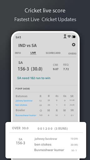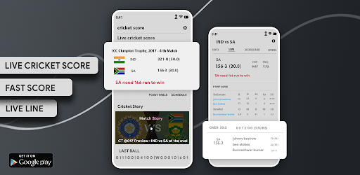 6). Skor dan kemungkinan yang lebih pantas dan tepat kemas kini skor secara langsung dan tepat dengan komen bola demi bola dengan sorotan grafik dan roda gerobak pada salah satu aplikasi kriket yang terbaik dan segar. Skor dan kemas kini dari ODI, ujian, T20I , T20 liga seperti IPL, BBL, CPL, BPL dan lain-lain perlawanan kriket domestik & wanita.