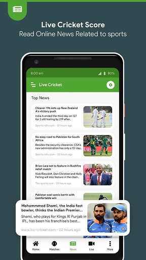 ✔ Cricket up to date news every hour or so