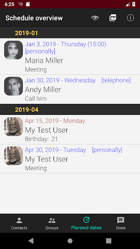 Penambahan kepada kenalan, seperti maklumat tambahan, nota yang berkaitan dengan tarikh dan pelantikan yang dirancang boleh direkodkan dalam aplikasinya.
