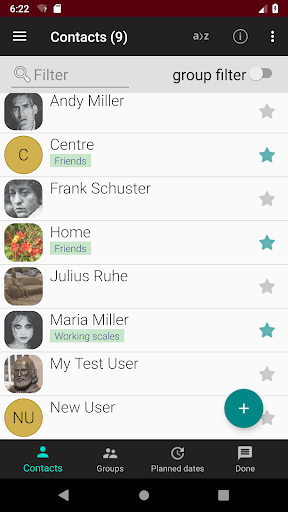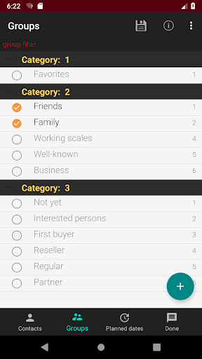Kelebihan aplikasi adalah bahawa saya boleh menguruskan kumpulan dalam kategori dan dengan itu memetakan pautan "dan / atau" antara kumpulan dan kenalan.