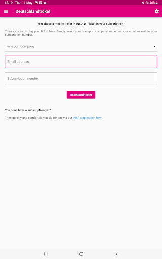 As soon as you have received your subscription number, you can download your D-Ticket into the app. You will find out which transport companies you can do this with when you subscribe. Once you have received your subscription number, it may take several hours before the data is technically available. Please be patient.