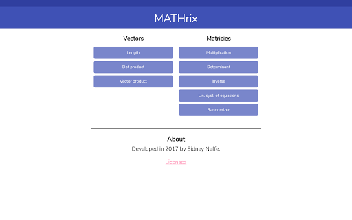 Mathrix is a calculator for matricies of any kind. Determinant, inverse, multiplication - everything in one place.