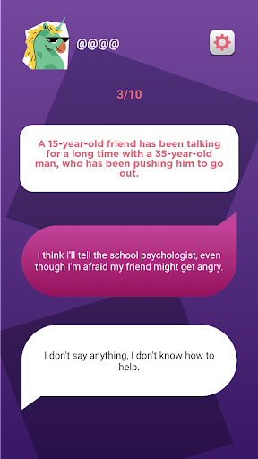 Bermain Safe adalah permainan pendidikan yang bertujuan menonjolkan dan meningkatkan kesedaran di kalangan orang muda (14) mengenai gangguan siber dan keganasan siber, dengan menangani topik seperti persetujuan, hubungan interpersonal yang sihat, dan sempadan peribadi.Ia boleh didapati dalam bahasa Yunani, Bahasa Inggeris, dan Farsi.Untuk memulakan, anda mesti memilih avatar dan nama watak.Permainan pertama ("Letakkan diri anda dalam kasut saya") membentangkan 10 senario yang menampilkan wira yang menghadapi keganasan siber.Setiap senario menawarkan tiga pilihan yang berbeza untuk anda memutuskan perkembangan mereka.Dalam permainan anagram kedua (& quot; cari perkataan & quot;) anda perlu menemui istilah dengan memilih huruf yang betul dan membuat perkataan.Akhirnya, permainan ketiga (& quot; memberi penyelesaian & quot;) menghendaki anda mencari jawapan yang betul.
