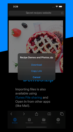 Notice: this app does not include any media download feature (mp3, mp4, mpv, wav etc). The downloadable content must be non-audiovisual.