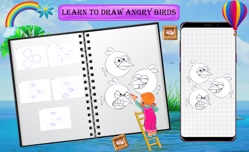 Bagaimana untuk menggambar watak-watak Angry Birds adalah aplikasi yang sempurna untuk mereka yang ingin menjadi seorang artis dan suka melukis aksara burung marah. Aplikasi ini mengajar anda bagaimana untuk menarik watak-watak burung marah dalam langkah-langkah mudah dan meningkatkan keyakinan anda terhadap lukisan dan pewarna.