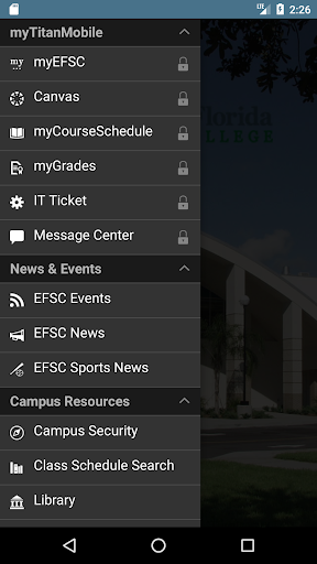 Titan Mobile akan membolehkan anda melihat berita dan acara terkini Kolej Negeri Florida Eastern Florida.Pelajar juga akan dapat melihat jadual dan gred mereka dari peranti mudah alih mereka.Maklumat hubungan pengajar mudah diakses melalui Titan Mobile, seperti Peta Kampus dan halaman Facebook EFSC '