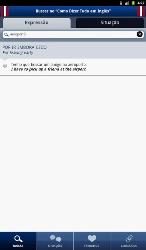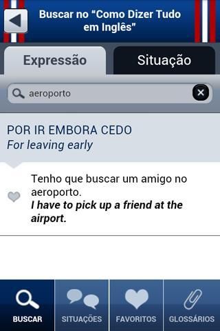 The Free app "How to say it in English" is an English conversation guide / Portuguese indispensable in communicating in English, for those who will travel or are already traveling. This free version of Talk application to travel and tourism, you will find ready-made phrases, words and popular expressions and use during a trip. If you are a tourist who need English at his fingertips, has applications in the palm of your hand and be amazed by the ease of use.