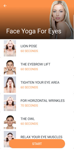 Aplikasi ini menyediakan yoga wajah untuk pipi, mata, kulit bercahaya, kehilangan lemak & anti penuaan.