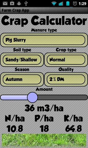 The Farm Crap App is designed to help farmers make the most of their manure (slurry, FYM and poultry litter). The app contains 3 components; the calculator, the image library (to which you can add your own photos), and the record sheets. The calculator will determine the amount of crop-available key nutrients (N, P & K) within the manure at different spreading rates helping you decide how much to spread in order to meet the crop requirements, and also what this looks like.
