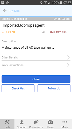 Digunakan oleh penyedia perkhidmatan dan juruteknik lapangan dalam industri pengurusan kemudahan, ia menyediakan mereka dengan aplikasi lapangan untuk memperuntukkan pekerjaan dan menjejaki apa yang mereka lakukan dalam masa nyata.Pembekal kini boleh meneruskan kerja tanpa overhead kertas kerja, memastikan proses yang lebih efisien dan hasil akhir yang lebih produktif., Daftar masuk ke pekerjaan dan pekerjaan rapat untuk disiapkan.Semasa di tempat kerja, aplikasi itu membolehkan juruteknik lapangan menjalankan kerja mereka berikutan arahan kerja yang ditetapkan untuk melaksanakan tugas mereka