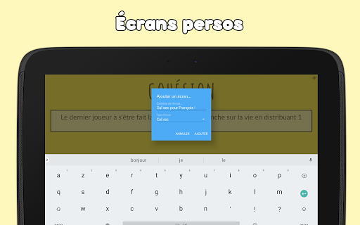 Alcoholum adalah permainan minuman yang bagus dan mudah digunakan yang membolehkan anda minum dengan rakan anda.Konsepnya mudah: anda mendaftarkan nama setiap peserta dan anda mengikuti peraturan.Itu semua!Alcoholum diduduki!😉