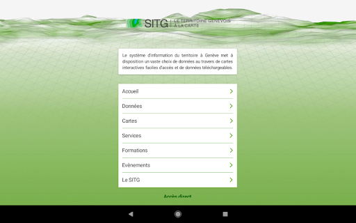 L'application SITG Mobile vous permet de naviguer dans les données du territoire de Genève directement depuis un smartphone ou une tablette mobile.