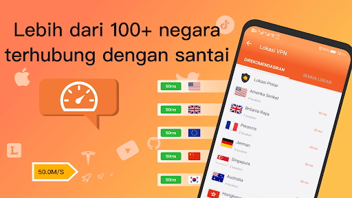 kelajuan VPN dioptimumkan untuk 160 lokasi di 94 buah negara, dan kelajuan muat turun sehingga 50MB / DTK.
