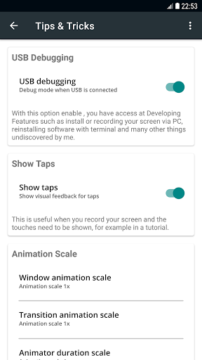 Dengan aplikasi ini, anda boleh mengakses 'Developer Options', ciri telefon pintar anda yang sangat berguna.Aplikasi ini juga dilengkapi dengan petua dan tip untuk menggunakan ciri ini untuk keuntungan anda.