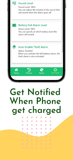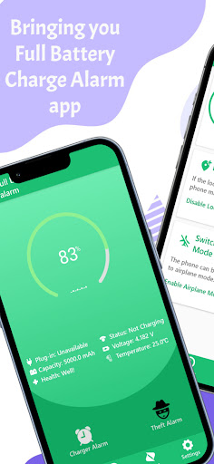 The Overcharging of battery can damage battery so it should be plugged out when it reaches 100%. So Full Charge Alarm will help you to keep your phone's Battery healthy.