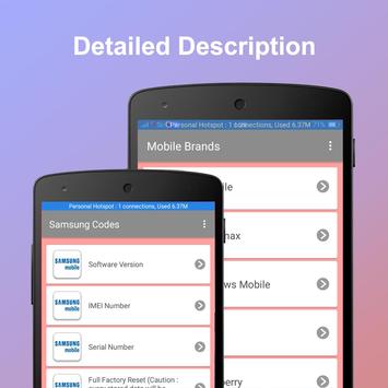 IMPORTANT: This a unique app which is help to know about mobile phone security menu, or some important features, but be carefully when you use these codes in your device be sure, because these codes will change your phone hardware configuration, please use it on own risk.