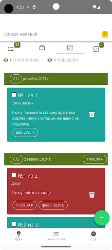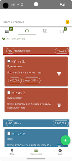 В желания добавлена стоимость и дата. Теперь можно вывести все желания по категориями или по месяцам с общей стоимостью.