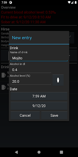 - Automatic calculation of the time to sobriety