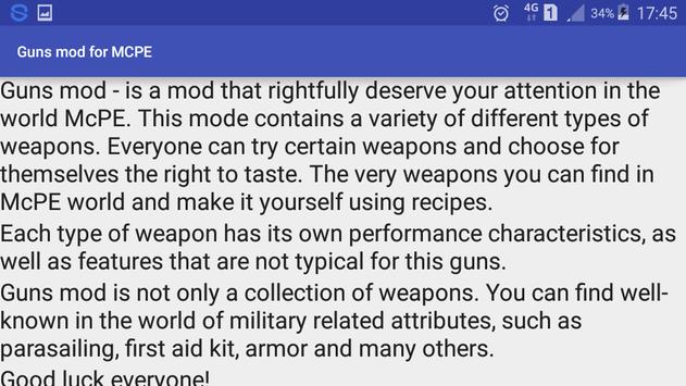 Guns mod is not only a collection of weapons. You can find well-known in the world of military related attributes, such as parasailing, first aid kit, armor and many others.