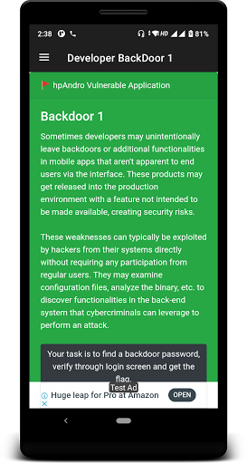 Kadang-kadang pemaju mungkin secara tidak sengaja meninggalkan backdoors atau fungsi tambahan dalam aplikasi mudah alih yang tidak jelas kepada pengguna akhir melalui antara muka.Produk-produk ini mungkin dilepaskan ke dalam persekitaran pengeluaran dengan ciri yang tidak dimaksudkan untuk disediakan, mewujudkan risiko keselamatan.