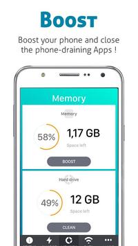 When you open the app, a screen opens where you can select one of the following options: Booster-Cleaner-Data