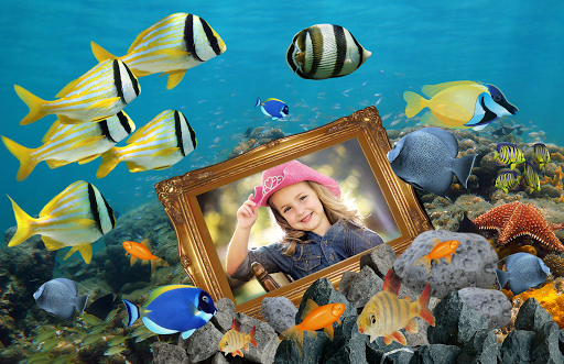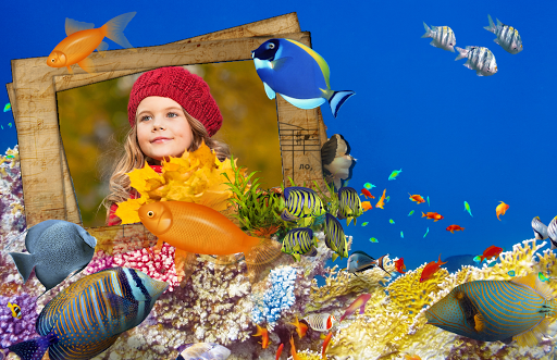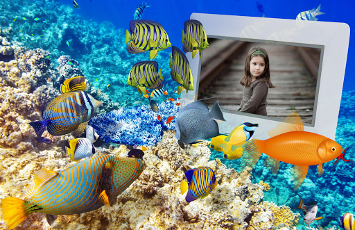 Place your Photos in Aquarium. Beautiful, Cute and Colorful. Enjoy with your customized photos as background under the Sea. Your selfie will look beautiful with fishes with different collection of frames