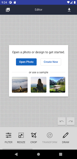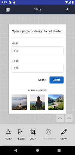 Kanvas kosong - Pixie tidak perlu mengedit foto yang ada, imej tersuai dengan mudah boleh dibuat dari awal juga.