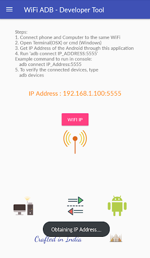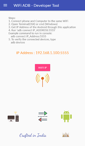 WiFi ADB - Developer Tool makes it easy to debug your apps directly on device via WiFi connection. No need to use USB cable to connect to Android Phone anymore. After enabling ADB over WiFi, to connect your computer follow below steps to open this feature.