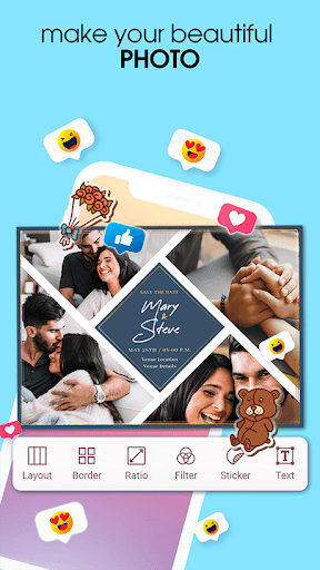 Just select several pictures, Photo Editor instantly remix them into cool photo collage. You can pick layout you like best, edit collage with filters, background, stickers, text etc.