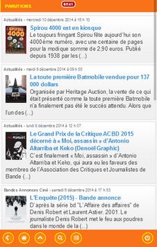 Bande Dessinée Info est une application 3 en 1 qui vous permet de suivre en direct l'actualité de la bande dessinée, des comics et des mangas, en partenariat avec le site du même nom, d'accéder à la base de données du site (titres et séries, auteurs, éditeurs, planning des sorties) et de gérer votre collection et vos prévisions d'achat.