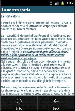 Chiudono la lista di funzionalità, due parti statiche che raccontano la storia degli Alpini e l'attuale ruolo ricoperto in società.