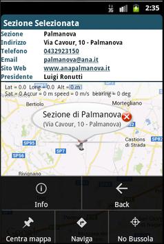 La funzionalità principale riguarda la ricerca di una sezione in tutta Italia e una volta trovata vengono visualizzate tutte le informazioni principali quali indirizzo, telefono, mail ecc. Inoltre l'applicazione consente di raggiungere la sezione selezionata tramite navigazione con GPS.