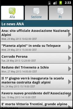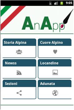 L'applicazione è un semplice manager che consente agli utenti di poter conoscere in real time tutte le ultime news pubblicate dal sito ANA Nazionale. Le news sono divise per argomenti: ANA, Sezioni, Protezione Civile.