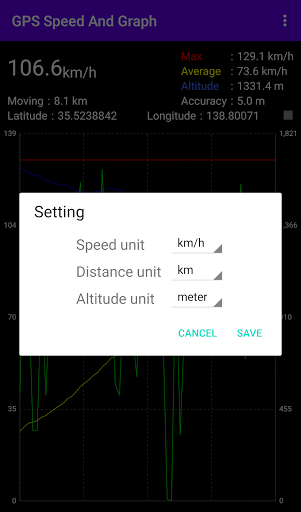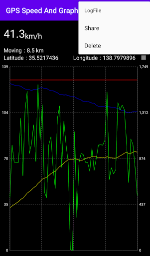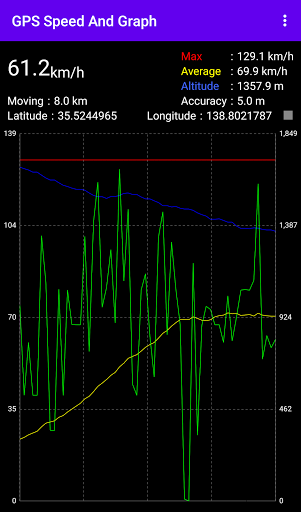 Ia adalah aplikasi yang mengukur kelajuan, ketinggian dan koordinat menggunakan maklumat lokasi GPS dan memaparkan kelajuan dan ketinggian dalam graf.
