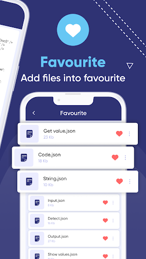The JSON viewer feature of JSON file opener app allows the user to view all the JSON files stored in the device. the user can easily open, read and view any file of their choice. In addition, the JSON to pdf feature of JSON viewer free permits the user to convert JSON files into pdf. Using this amazing feature, one can not only read any JSON file but can also convert it into pdf. Moreover, the converted pdf feature of JSON viewer free app lets the user view the converted pdf files using this app. This feature is specifically for users’ convenience, as they do not need to search for the converted pdf files in their storage and can easily find them in their JSON viewer app. Finally, the favorite tab authorizes the user to keep frequently used files in a folder named favorite, which is readily available to its users and they do not have to fetch it from the long JSON files list. The JSON creator is quite a convenient and mobile-friendly app. The UI of JSON viewer app is easy to navigate and requires no professional guidance.