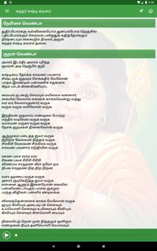 The song consists of a total of 244 lines, including four introductory lines known as "Kaappu," followed by a couple of meditational lines and the main song portion consisting of 238 lines known as the "Kavasam." The grammar employed in the introductory part is the Naerisai venba and that of the meditational part is the Kural venba, widely known to the Western world for its exclusive usage in Tirukkural. The "Kavasam" part follows the grammar of Nilai Mandila Aasiriyappaa.