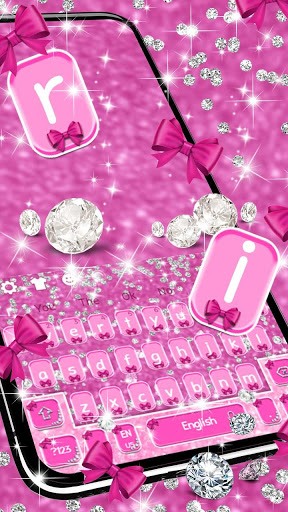🎊 Download the Glossy Shine Pink Bow Diamond Keyboard Theme from Google Play Store.