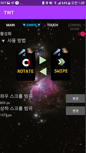 - swipe to four-way directions (up, down, right, left)
