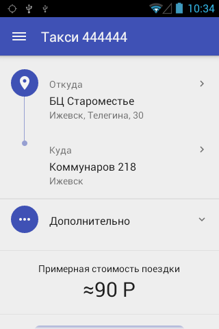 Pilih alamat di peta, masukkannya secara manual atau pilih dari senarai alamat yang digunakan sebelumnya; hasrat atau aduan kepada perkhidmatan teksi.Dengan tegas mengambil niche bebas ekonomi di Izhevsk.Harga benar -benar salah satu yang paling rendah di bandar - kos laluan minimum teksi penumpang adalah 70 rubel, harga ini termasuk sehingga 5 km jalan yang dilalui.