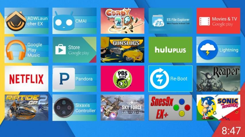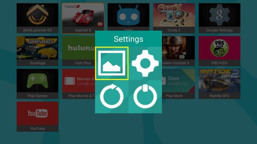 a home launcher replacement for android tv. Pretty simple shows all your apps press the play button or y button on your controller to open the settings. Tired of not being able to set your own wallpaper gotcha covered. No reboot or power off button gotcha covered (you do need root for that though). Questions comments complaints. Send em to me.