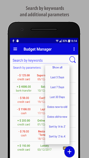 - Later on you can simply find your incomes/expenses with the help of the Search Field, and other built in helpers