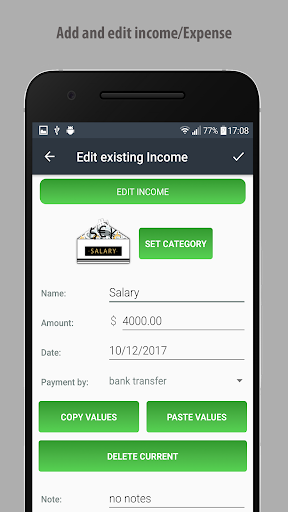 This app is user friendly and very simple for use. Easy adding the new income or expense with the " " button and filling out wanted fields like: