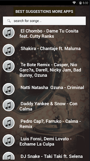 Kami menyampaikan kepada anda sebuah aplikasi yang merangkumi semua lagu Latin dan Sepanyol yang paling terkenal yang melebihi satu bilion tontonan tanpa jaring ..