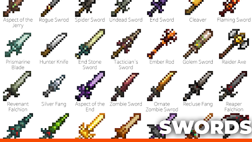 Adakah anda mahu melihat pedang untuk minecraft yang banyak kali lebih baik daripada yang biasa? Mod untuk pedang untuk minecraft akan menambah banyak pedang baru dan sama sekali berbeza untuk minecraft. Anda akan melihat pedang yang akan menghantar musuh seratus blok dari anda dengan satu pukulan. Mod Minecraft telah mencapai tahap yang baru dan sekarang anda akan mendapati Pedang yang anda tidak dapat memikirkannya. Beritahu rakan anda tentang mod untuk pedang untuk minecraft dan belajar perkara-perkara baru tentang pedang bersama-sama. Pedang di Minecraft telah menambah keupayaan untuk memegang dua pedang di tangan anda sekaligus. Jika Mobs menyerang anda, maka ambil pedang dinamit di Minecraft dan meniupnya. Pedang untuk Minecraft boleh menyebabkan tornado atau banjir, jadi anda pasti akan bersenang-senang.