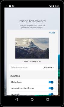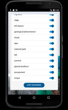 Detect broad sets of categories within an image and copy the generated keywords.